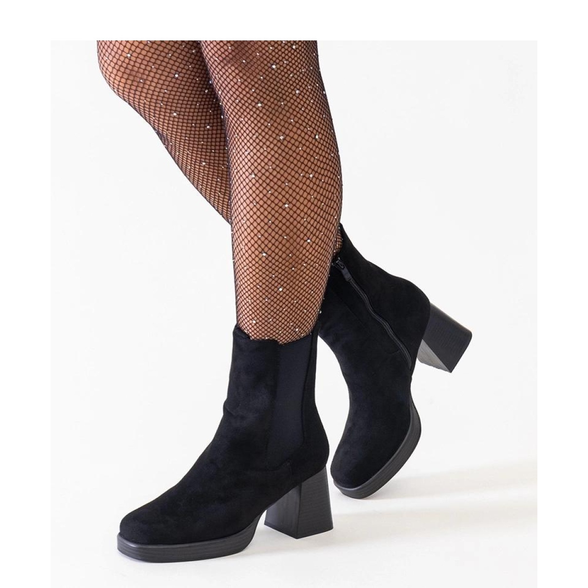 Détails: Boots noires à bout carré sur talon, éco-daim Hesca - Solea le noir