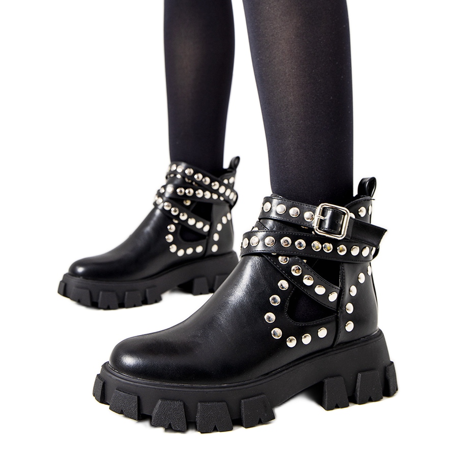Les bottines cloutées noires Kinney sont le choix parfait pour les femmes qui souhaitent ajouter un peu d'audace et d'expressivité à leur style. Grâce à son design tendance avec une plateforme haute de style trappeur, ce modèle attirera certainement l'attention et mettra en valeur n'importe quelle tenue.