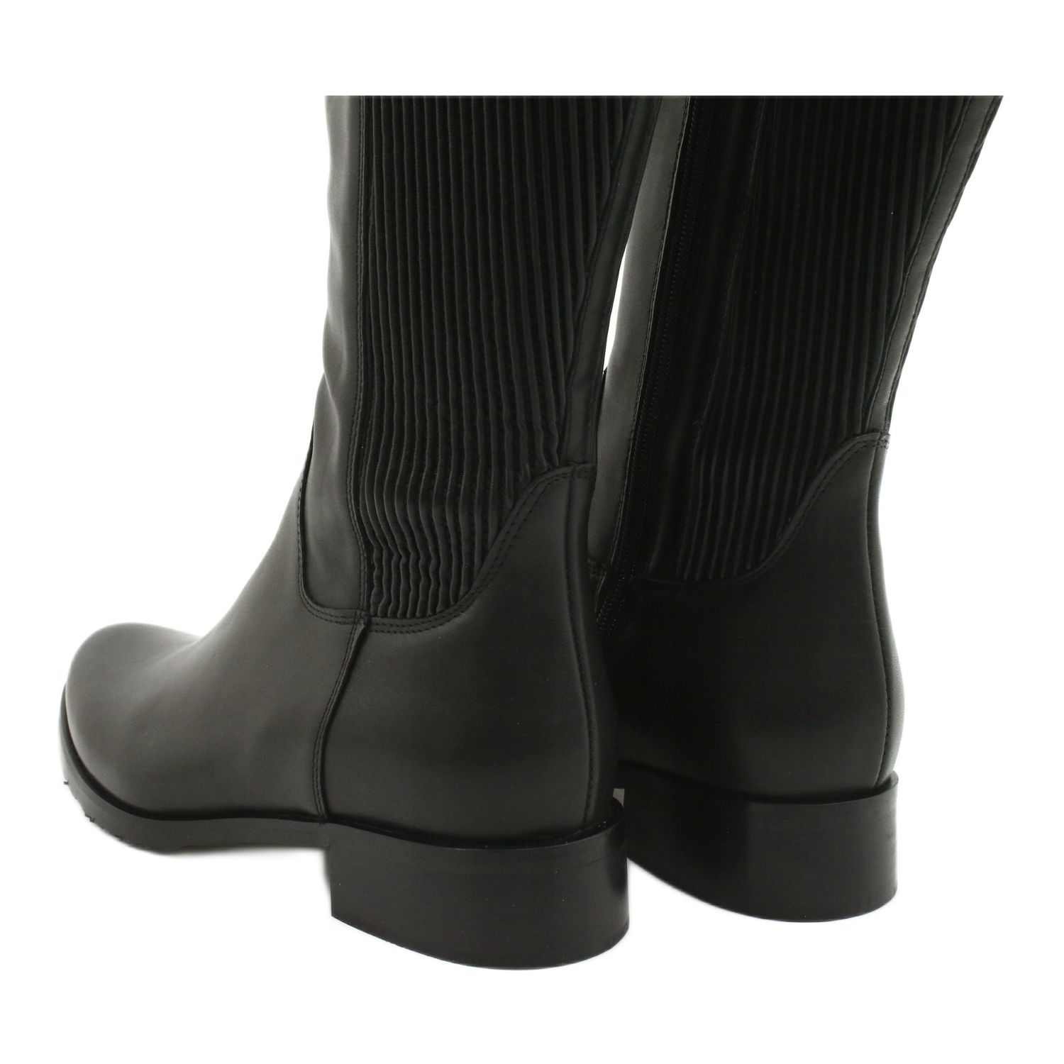 La caractéristique qui distingue ces bottes est un insert en cuir souple et large qui s'adapte à la largeur de la jambe, garantissant un ajustement parfait. La hauteur supérieure d'environ 40 cm signifie que les bottes couvrent efficacement le mollet, et le talon bas de 3,2 cm assure un confort de port tout au long de la journée.