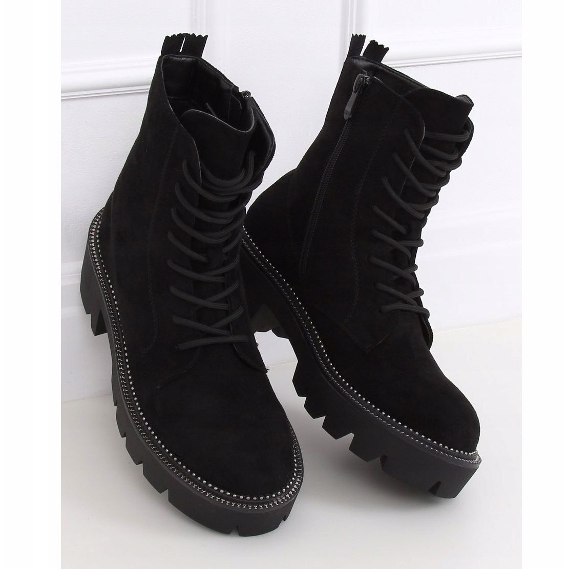 Découvrez style et confort avec les bottines à semelle haute UK13P Black, qui correspondent parfaitement aux dernières tendances de la mode. Ces bottines workwear à lacets pour femme, d'un coloris noir intemporel, se distinguent par une semelle impressionnante et décorée d'une hauteur de 2,5 cm et un talon solide d'une hauteur de 5,5 cm, qui leur apportent caractère et style.