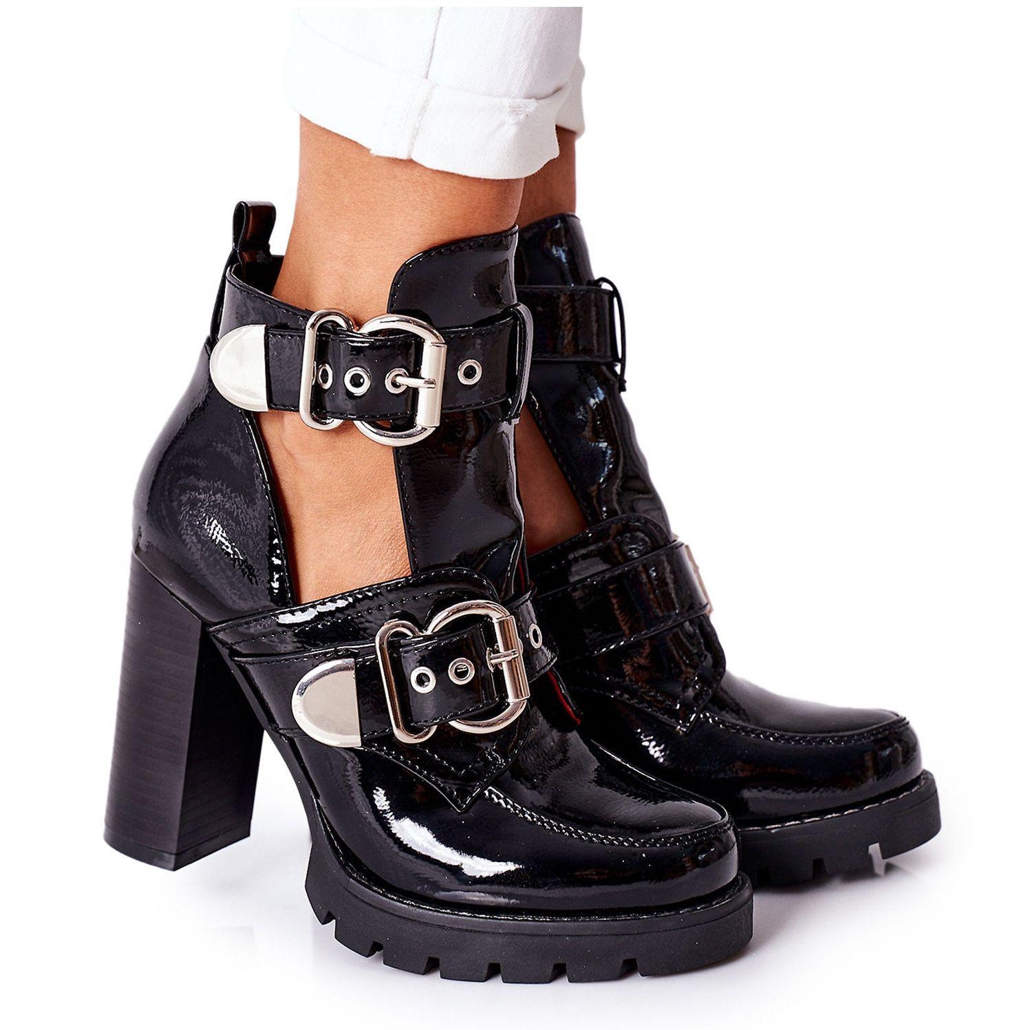 Les bottines noires vernies à talons hauts Bramshall Buckle sont un choix parfait pour les femmes qui souhaitent allier élégance et confort. Ces bottines élégantes en cuir écologique verni se distinguent non seulement par leur aspect tendance, mais aussi par leur côté pratique.