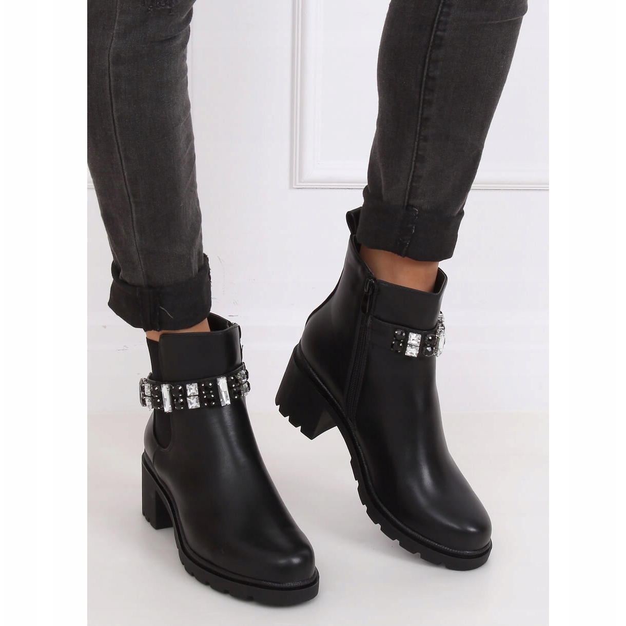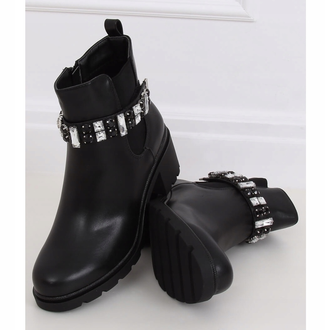 Inna marka Boots ornées de pierres noires CH19176 Noir le noir
