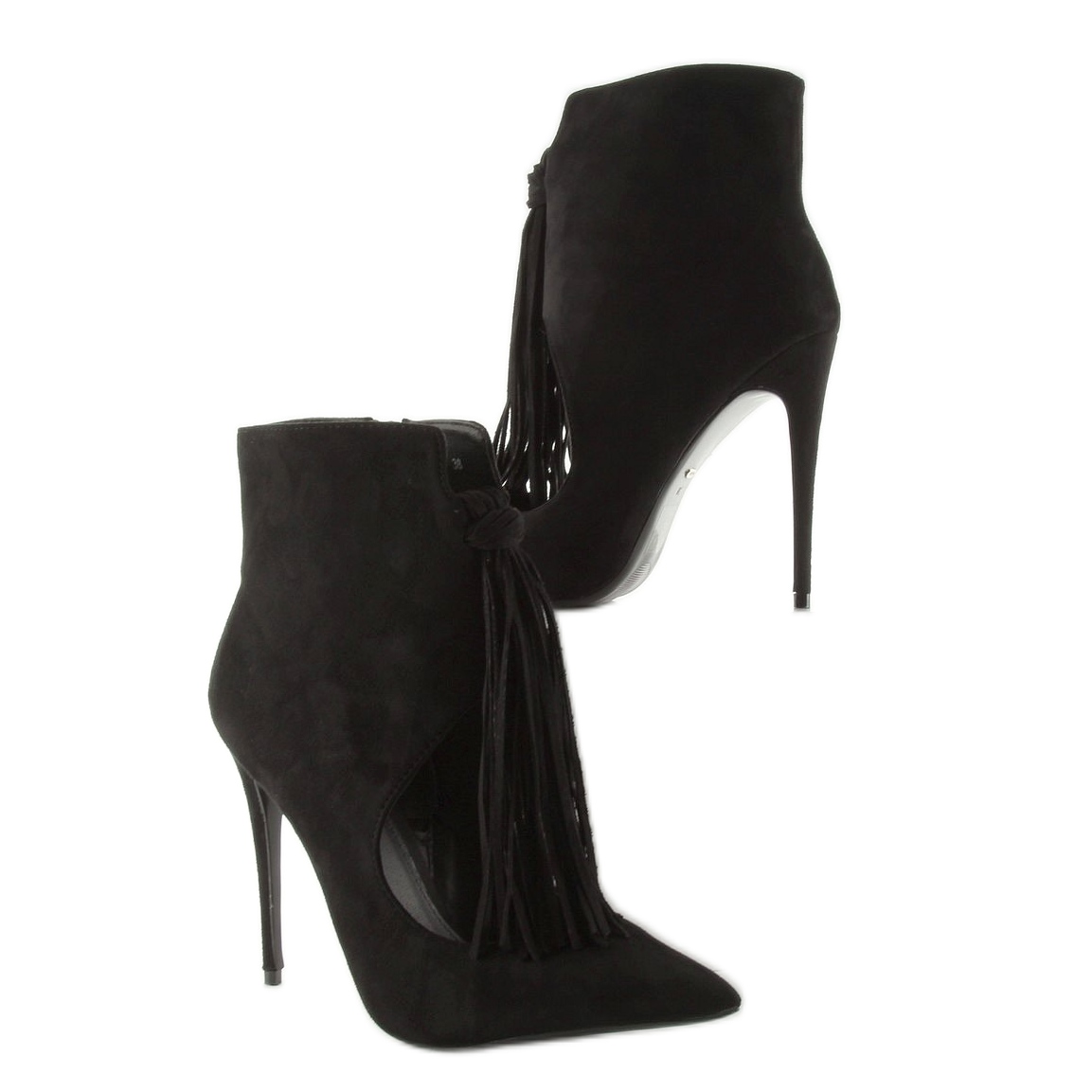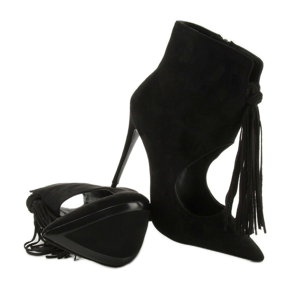 Inna marka Boots ouvertes à franges 5035 Noir le noir