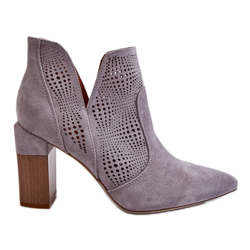 Découvrez l'élégance et le confort à la fois grâce aux bottines à talons ajourées Leanna de la marque PM1. Ces bottines grises uniques sont fabriquées en éco-daim de haute qualité, ce qui garantit non seulement un aspect esthétique, mais également un confort de port. Un talon tendance en forme de bloc, de 9 cm de haut, ajoute du style à n'importe quel style, ainsi que de la stabilité et du confort.