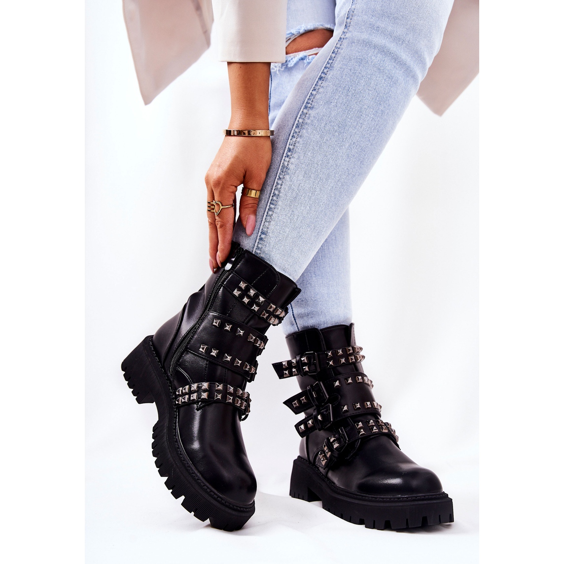 Découvrez le dernier modèle de bottes de travail à brides et clous - Brenna, qui s'adaptera parfaitement aux tendances de la saison automne/hiver. Ces bottines noires stylées, confectionnées en cuir écologique, allient élégance et confort. L'intérieur recouvert de matière textile et l'isolation les rendent non seulement à la mode, mais aussi confortables à porter.