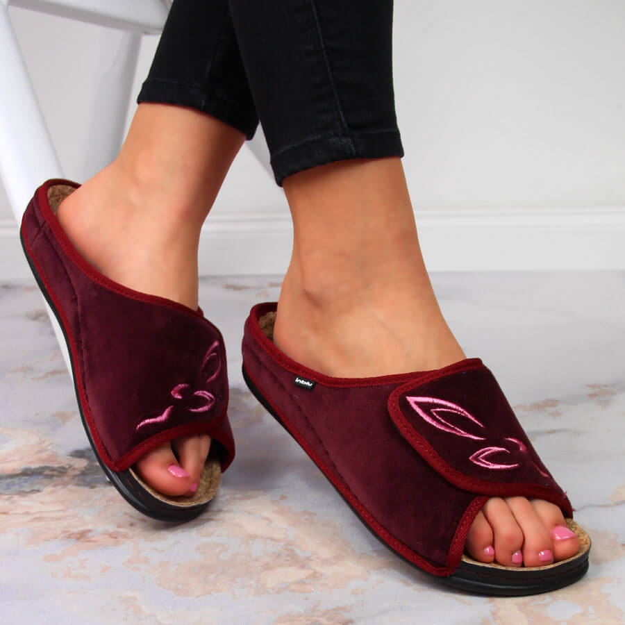 Détails: Bordeaux Inblu, velcro, pantoufles pour femmes rouge