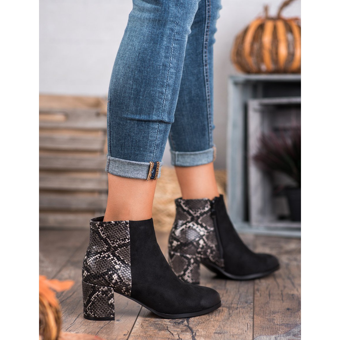 Découvrez les bottines noires Vinceza dans un imprimé animalier à la mode qui ajoutera une touche d'élégance à n'importe lequel de vos styles. Leur talon bas de 6 cm allongera efficacement vos jambes tout en vous assurant un confort de port. Grâce à l'isolation, ils sont parfaits pour les journées froides, et la coupe jusqu'aux chevilles ajoute de l'élégance.