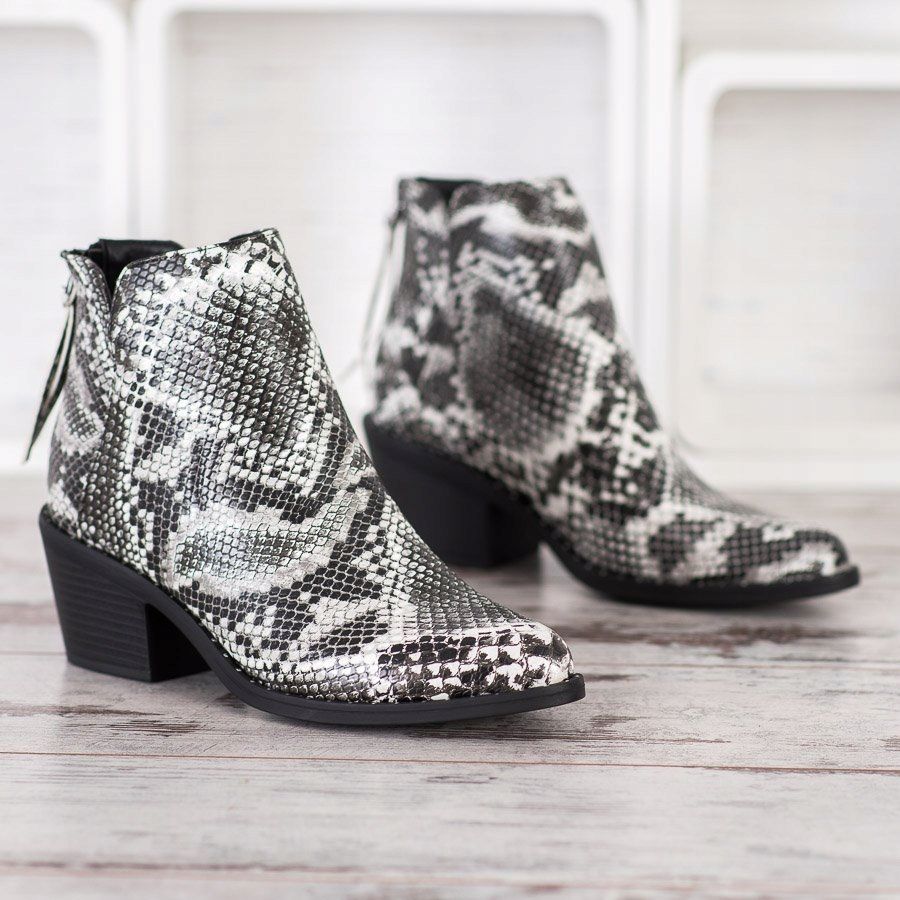 Ces bottes sont parfaites pour une tenue décontractée et lui apportent du caractère. Ils s'accordent parfaitement avec les jeans, les jupes et les robes, ce qui en fait un élément polyvalent de la garde-robe pour la saison automne/hiver. Choisissez les bottines Snake Print et laissez vos chaussures devenir une véritable décoration de n'importe quel style ! Commandez immédiatement les bottines de vos rêves et profitez d'un look tendance au quotidien !