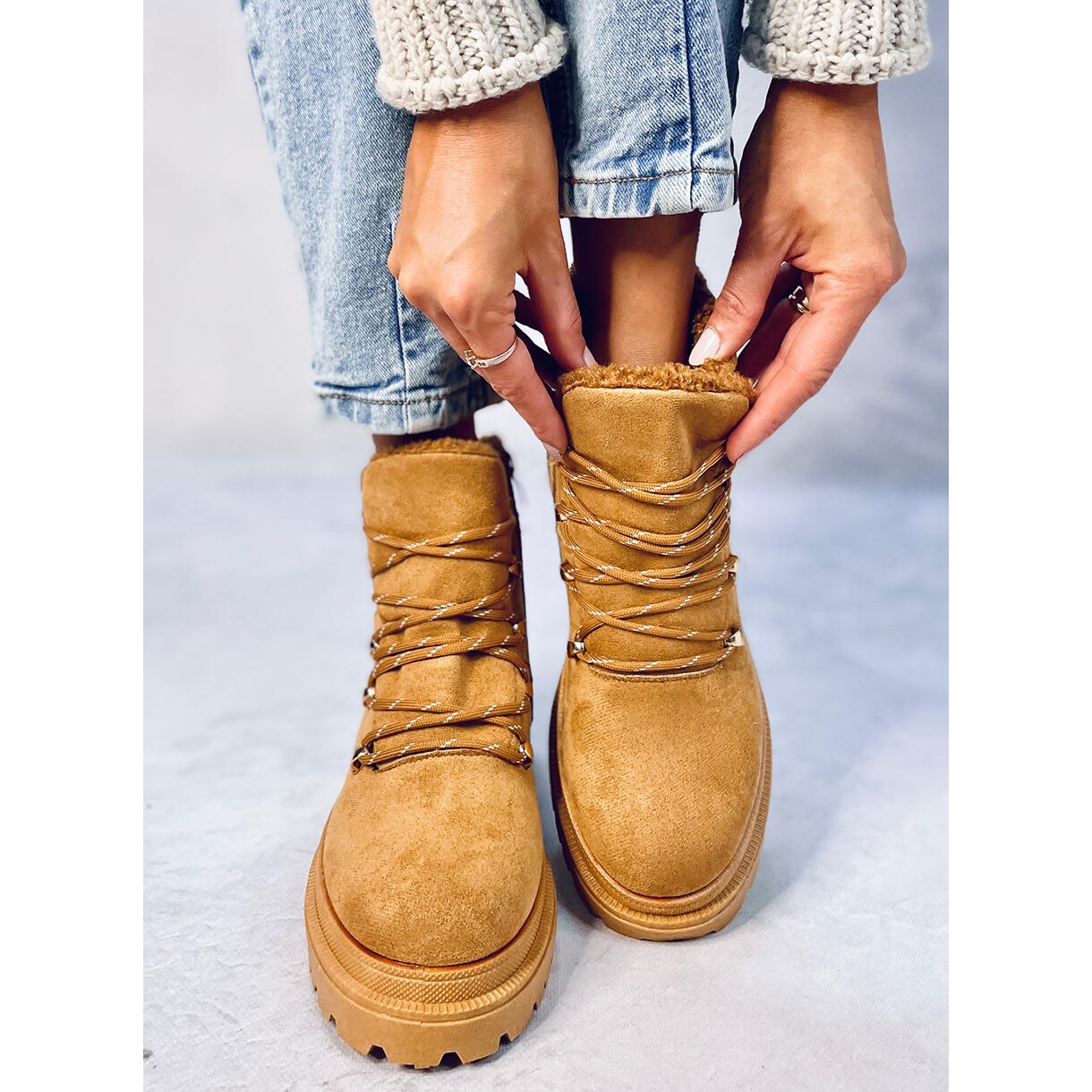 Les bottes Trapper sont des chaussures pour femmes élégantes et pratiques qui combinent les caractéristiques des chaussures de trekking avec le style urbain. Leur principal avantage est la possibilité de s'adapter précisément au pied grâce à un laçage fonctionnel qui imite l'apparence des chaussures de montagne. Le confort d'enfilage est assuré par une fermeture zippée supplémentaire sur le côté de la tige.
