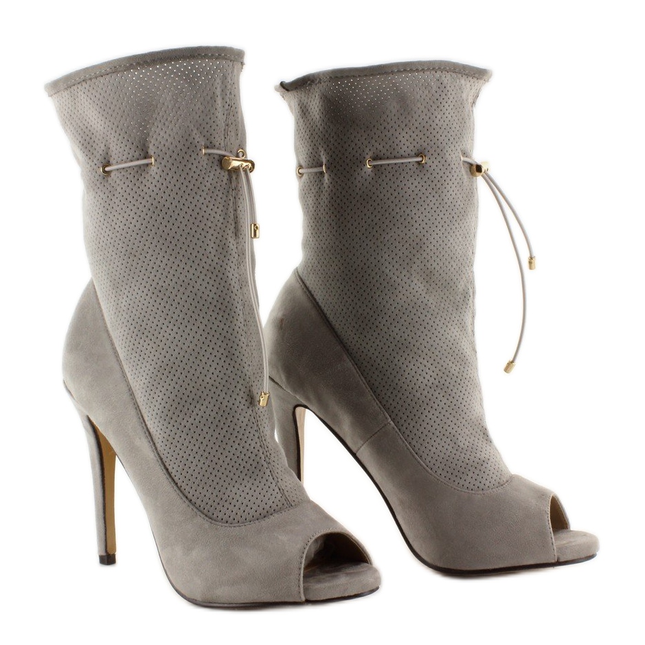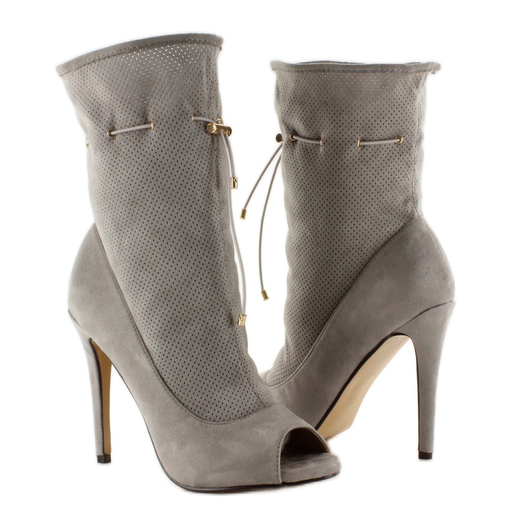 Nous vous présentons les bottes ajourées à bout ouvert SY15 dans une élégante nuance de gris qui attirera certainement l'attention. Ces belles bottes pour femmes se distinguent par une tige ample ajourée, qui assure non seulement un look élégant, mais aussi un confort de port. Grâce au cordon tiré, vous pouvez facilement ajuster la circonférence de la tige, ce qui permet un ajustement parfait à votre jambe.