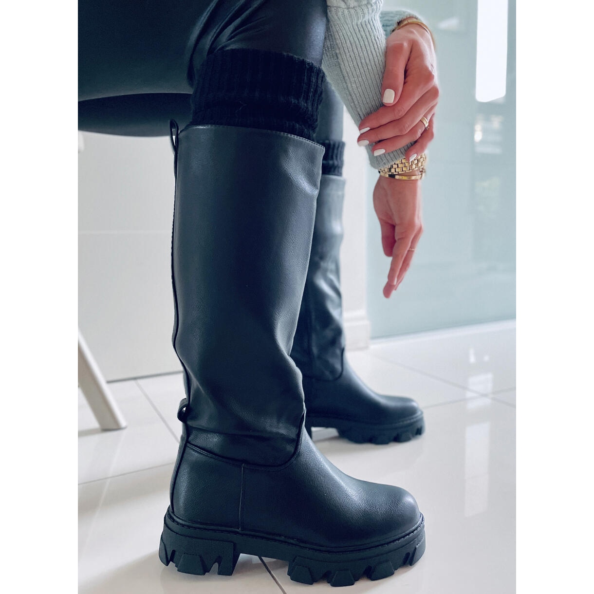 Les bottes sont à enfiler, ce qui rend leur enfilage extrêmement facile et rapide. Fabriqués en cuir écologique de haute qualité, ils offrent non seulement une belle apparence, mais aussi un confort de port grâce à l'intérieur doublé d'une fourrure délicate. Un avantage supplémentaire est un talon plat de 4 cm de haut, qui assure un confort au quotidien.