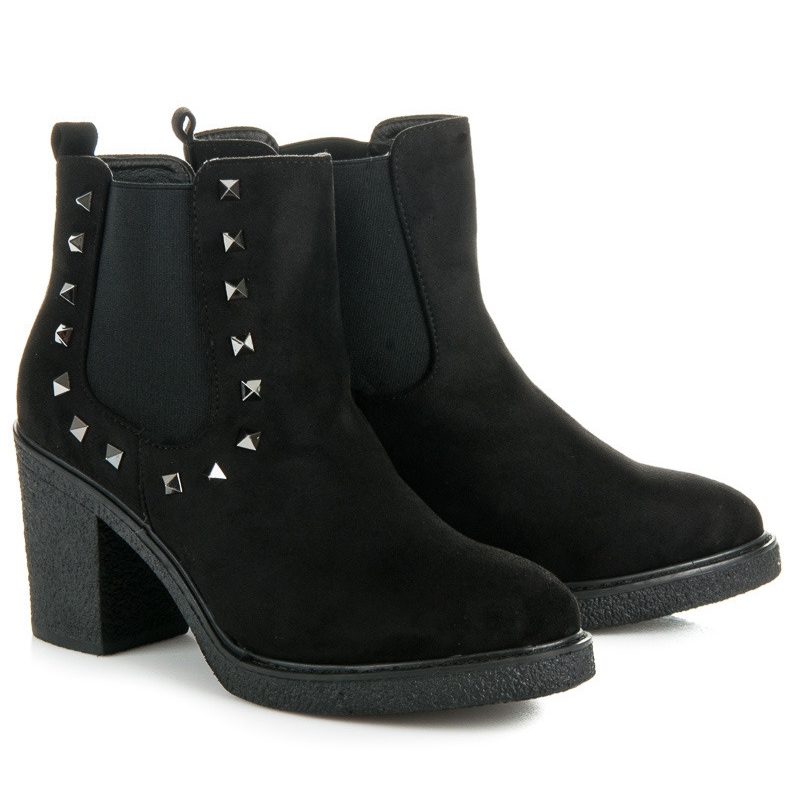 Le motif dominant est le noir classique, complété par des clous accrocheurs qui confèrent aux chaussures un caractère unique. Les bottines avec fermeture à enfiler rendent l'enfilage et le retrait des chaussures extrêmement faciles et pratiques.