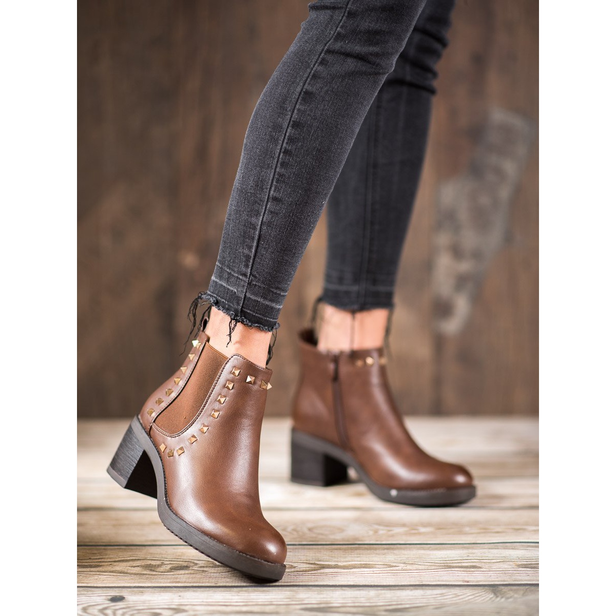 Détails: Top Shoes Bottes à clous brun