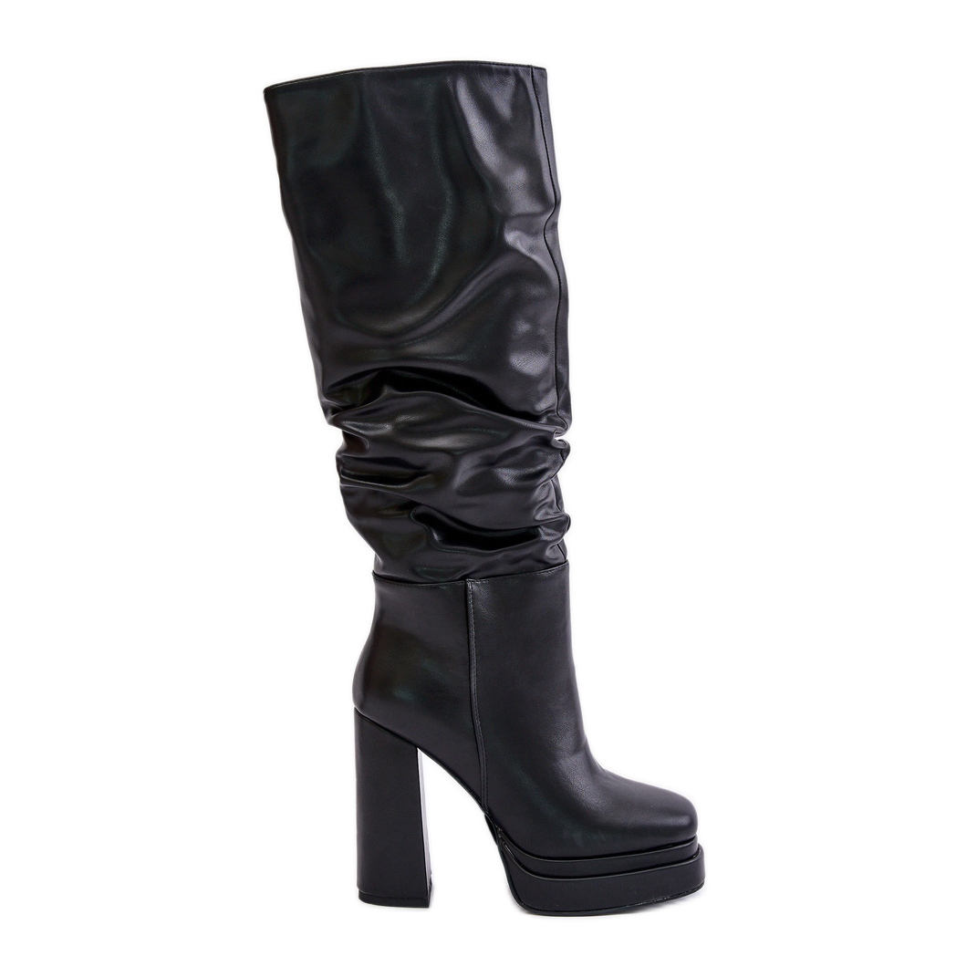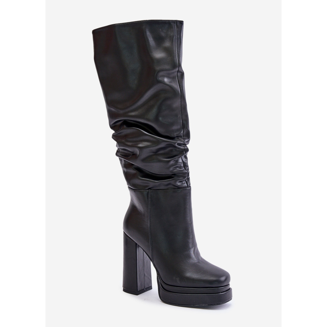 Détails: Bottes à enfiler isolées Beridra noires sur un talon haut et une plateforme avec fronces le noir