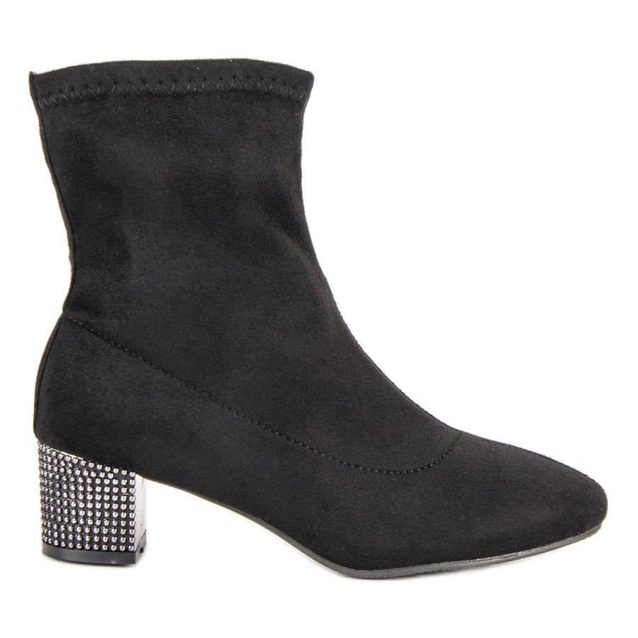 Découvrez un style unique avec les bottines Kylie, qui allient élégance et confort à la fois. Ces bottines noires à enfiler sont fabriquées en daim écologique, ce qui garantit non seulement un look tendance, mais respecte également l'environnement. Le talon décoré de 5 cm attire le regard et donne du caractère aux chaussures, tandis que le talon plat les rend extrêmement confortables à porter.