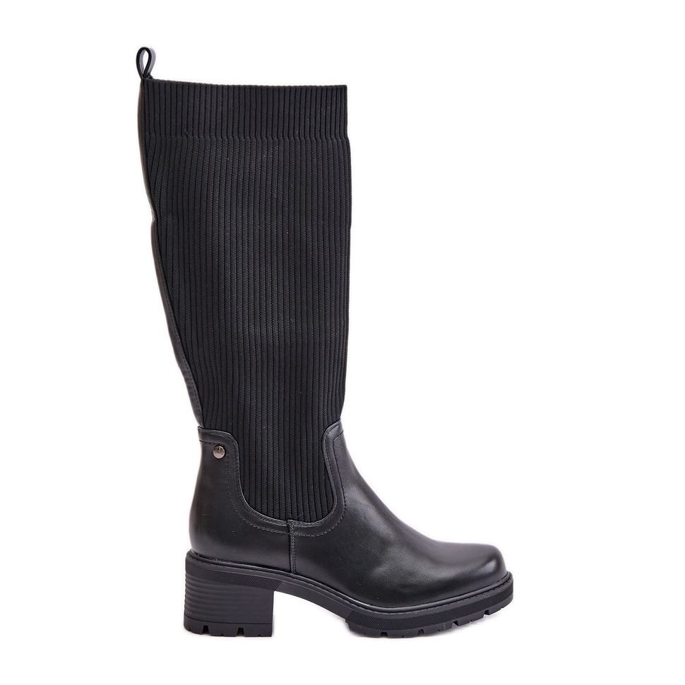 Nous présentons des bottes à enfiler avec une tige élastique devant le genou Vaimi, qui complétera parfaitement vos stylisations d'automne-hiver. Ces chaussures uniques sont faites de cuir écologique de haute qualité et de matériau textile, qui garantit leur durabilité et leur confort.
