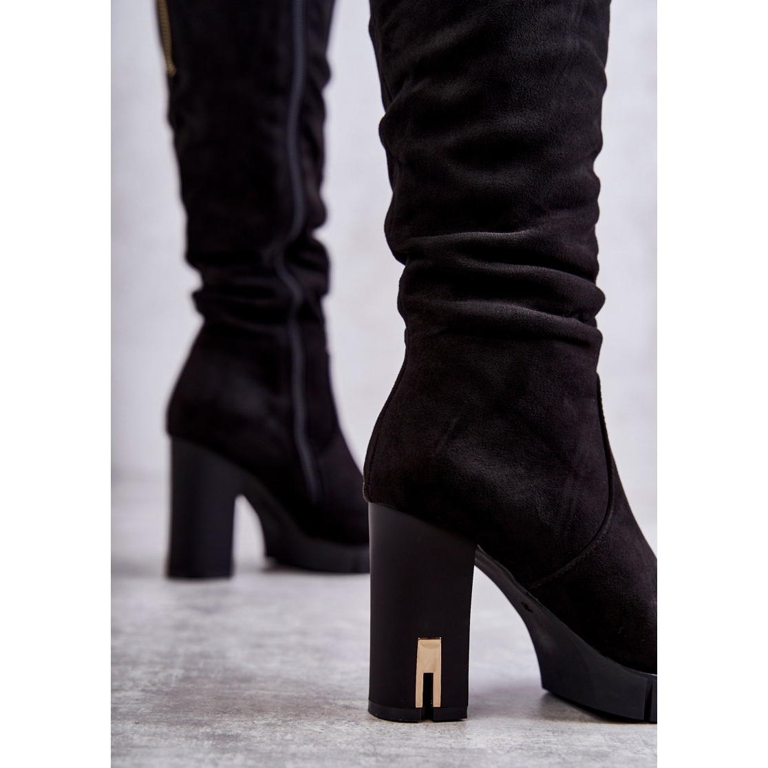 Détails: FB2 Bottes à glissière en daim noires classiques Laylah