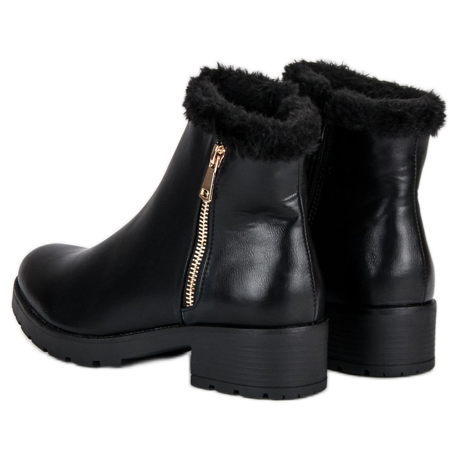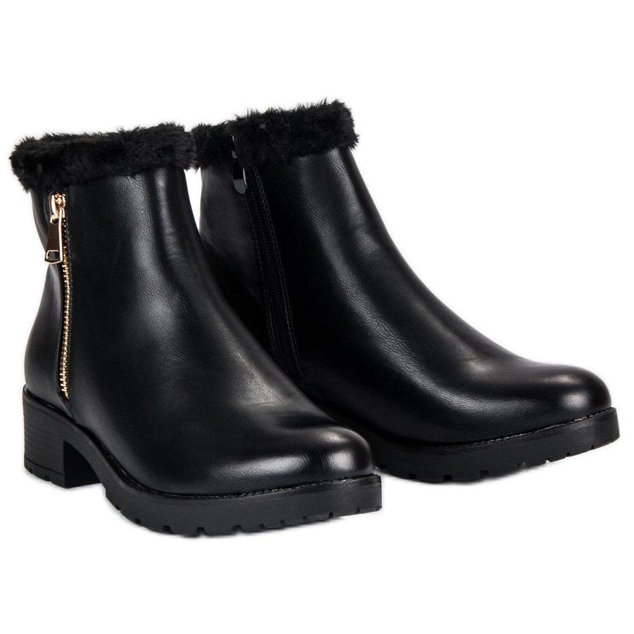 Ce modèle se distingue par une fermeture éclair décorative et une charmante fourrure sur le haut de la tige, qui lui donne du caractère et n'en fait pas une simple paire de bottines classiques. Un petit talon haut de 3,5 cm et une semelle solide avec bande de roulement garantissent stabilité et sécurité lors de la marche, protégeant contre le glissement.
