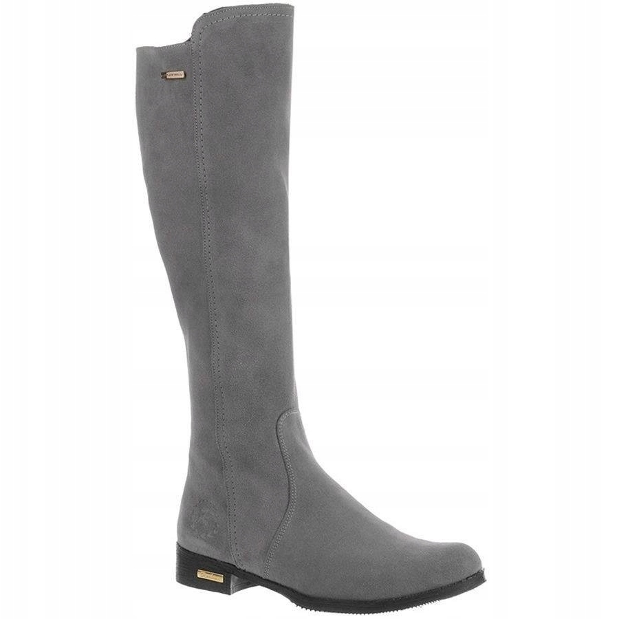 Des bottes uniques de la collection Keeshoes du fabricant Olivier sont un modèle classique qui ajoutera une élégance à chaque stylisation d'hiver. Fabriqué en cuir en daim naturel à la mode de gris, isolé pour le confort les jours plus frais, avec un château pratique à l'intérieur pour faciliter l'installation.