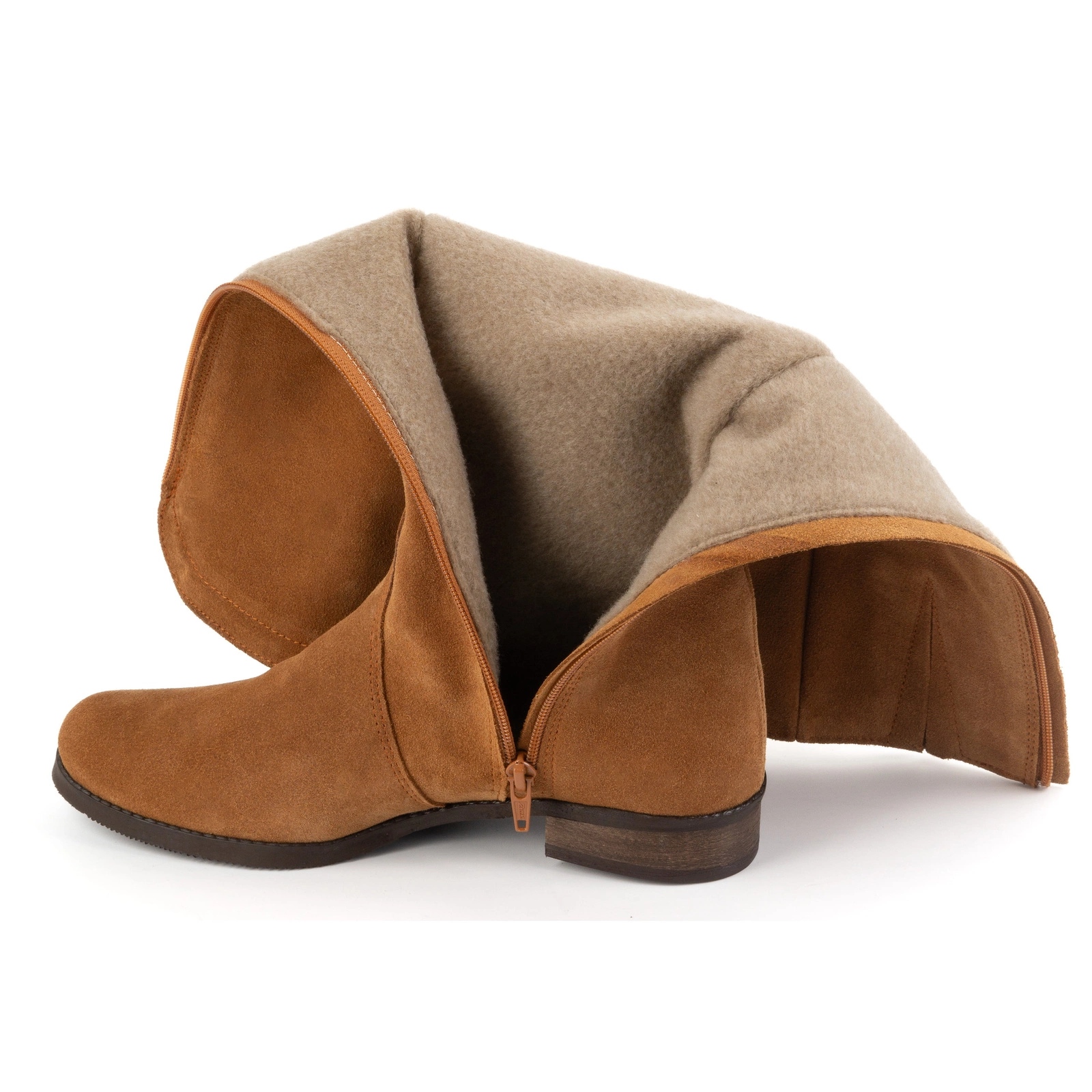 La hauteur totale d'environ 43 cm et la hauteur jusqu'au genou les permettent de s'adapter parfaitement à n'importe quelle silhouette, en ajoutant charme et style. Un bout rond et un talon plat de 3 cm de haut garantissent un confort de port même pendant de longues heures. De plus, une fermeture éclair pratique facilite l'enfilage et le retrait des chaussures.