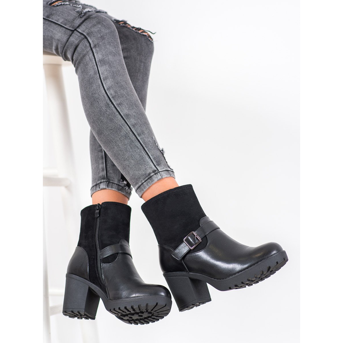 Grâce à la hauteur du talon de 8 cm à 10 cm, votre silhouette gagnera en légèreté supplémentaire, et la boucle décorative leur donnera un caractère unique. Une fermeture éclair sur le côté permet de les enfiler et de les enlever facilement, ce qui les rend extrêmement fonctionnels.