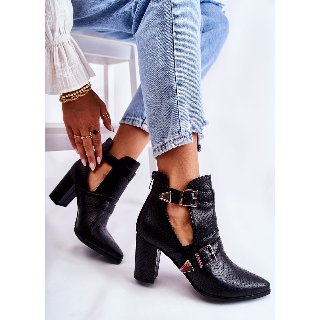 Nous vous présentons les bottines à talons hauts à la mode avec découpes de WJ2, qui ravissent par leur design élégant et leur fonctionnalité. Ces bottines noires, fabriquées en éco-cuir de haute qualité, sont une excellente option pour les femmes à la recherche d'un accent élégant dans leur garde-robe.