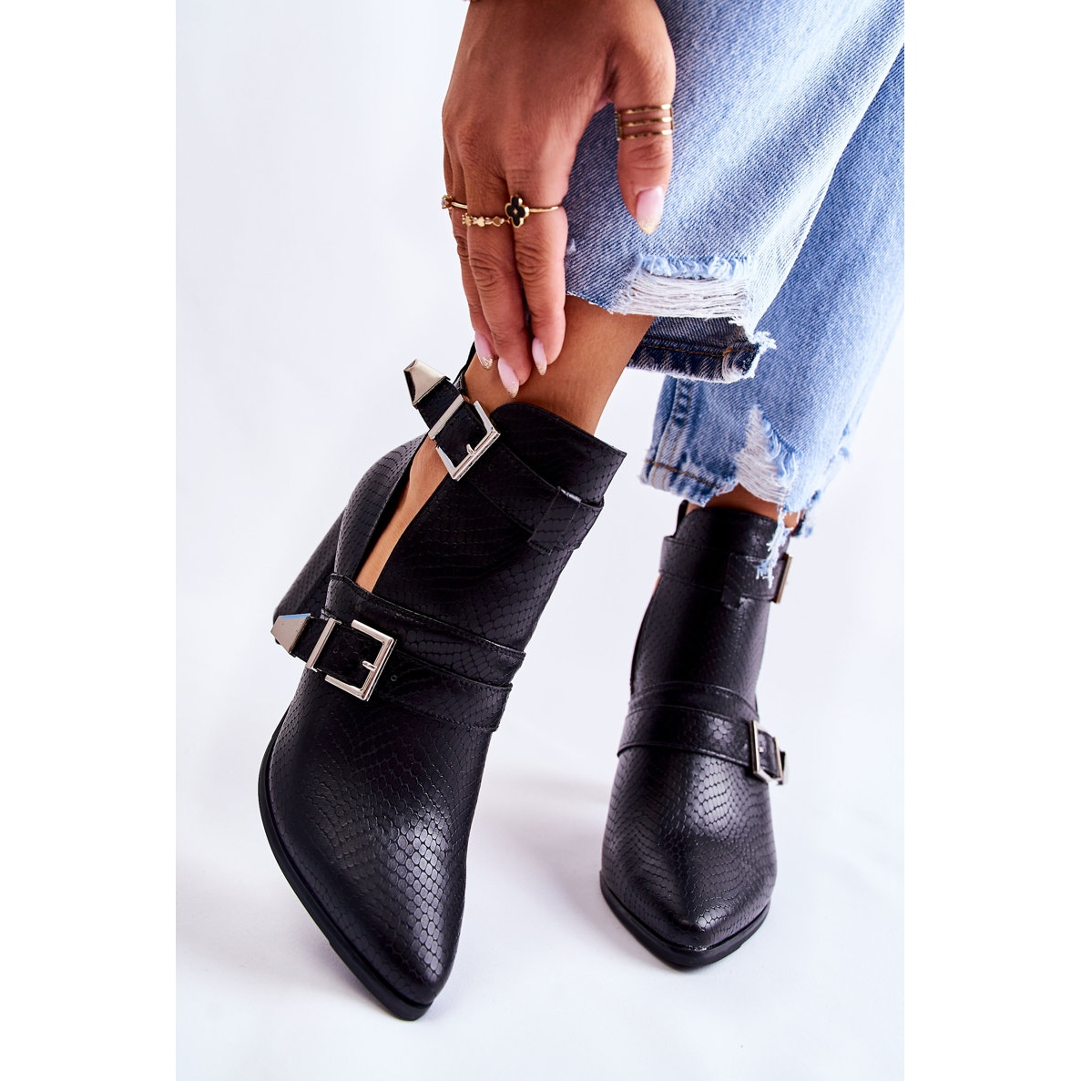 Les bottes se distinguent par des découpes phénoménales sur les côtés et des boucles impressionnantes qui leur confèrent un caractère moderne. De plus, une fermeture éclair pratique se trouve à l'arrière de la tige, ce qui facilite l'enfilage et le retrait des chaussures. Le bout pointu affine optiquement le pied, ce qui en fait un choix idéal pour un style quotidien ou plus formel.