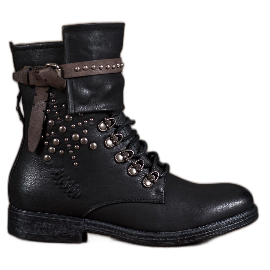 Découvrez des bottines qui allient élégance et style rock - Les bottines à lacets tendance Super Me en noir sont le choix parfait pour les journées plus froides. Fabriquées en cuir écologique de haute qualité, ces chaussures sont non seulement belles, mais sont également respectueuses de l'environnement.