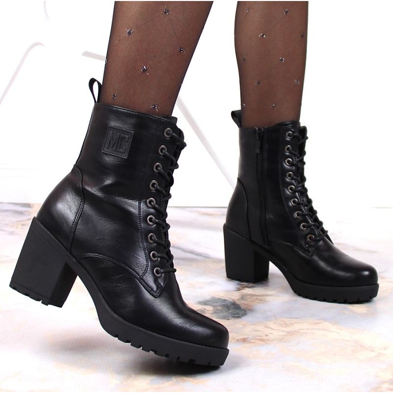 Les bottes ont un bout arrondi et un talon stable de 7 centimètres en forme de bloc, qui assure un confort même en cas de port prolongé. Grâce aux matériaux synthétiques qui composent la semelle, les chaussures sont légères et flexibles, ce qui affecte positivement le confort de marche.