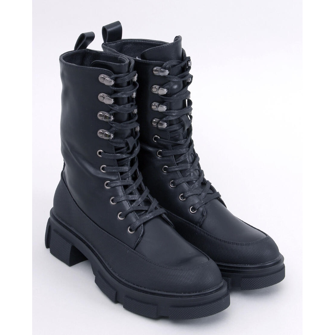 Bottes de chaussures noires de dart - noir, femmes, dans un style militaire. Des bottes classiques avec une apparence universelle et intemporelle - parfaite tous les jours, pour les stylisations urbaines et les jours plus frais.