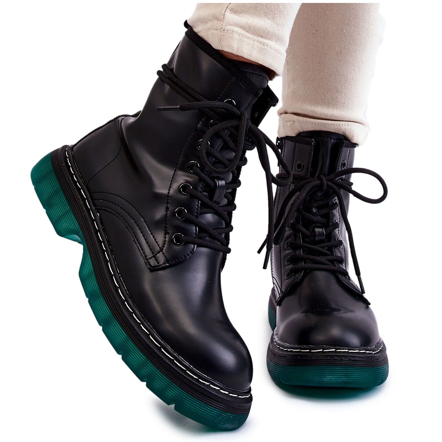 Bottes à lacets pour femmes avec semelle verte Trinah noire