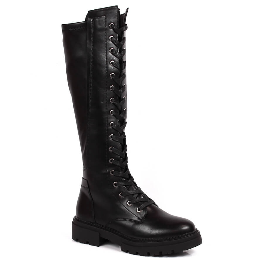 Détails: Bottes à lacets pour femmes avec une fermeture éclair, isolées noires Jezzi le noir