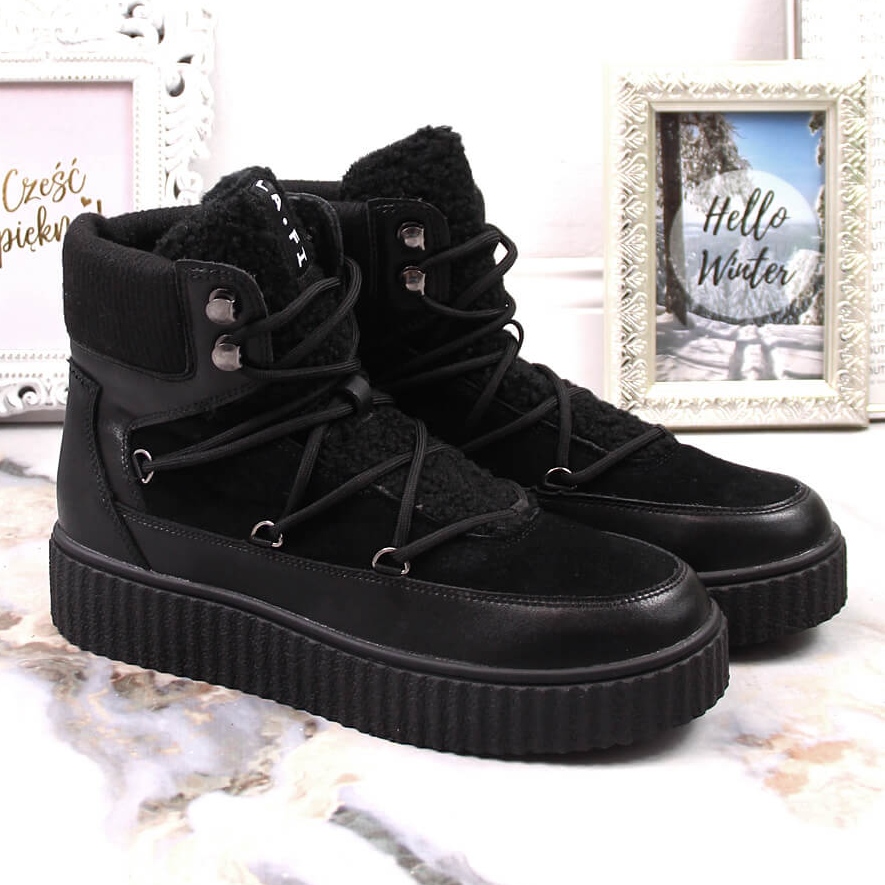 Détails: Bottes à lacets pour femmes avec une plate-forme Laura La.Fi noire isolée le noir