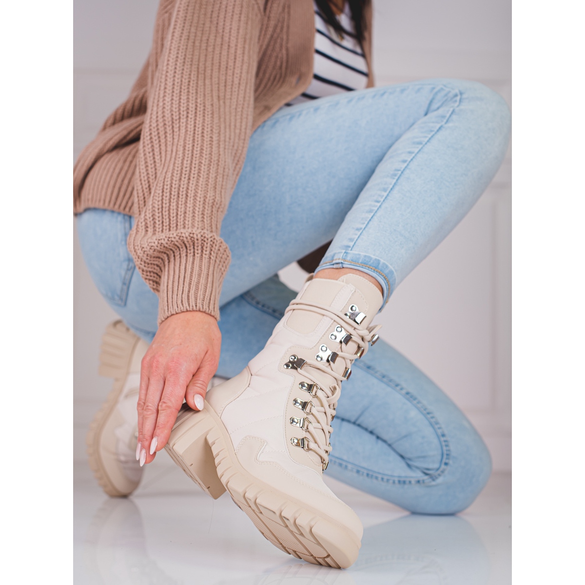 Détails: Bottes à lacets pour femmes sur la plateforme Shelovet beige