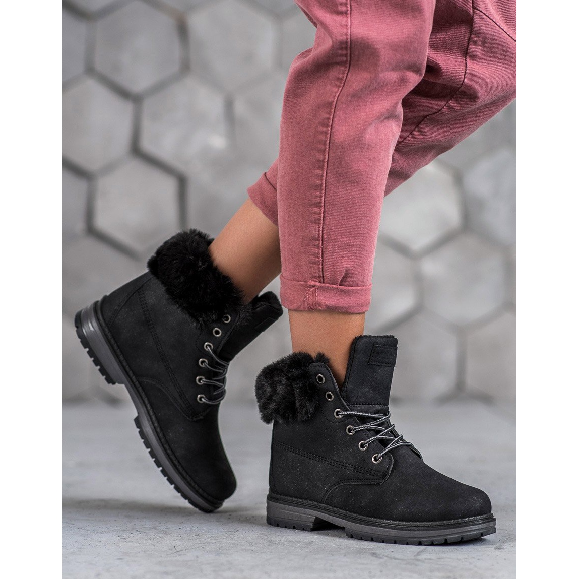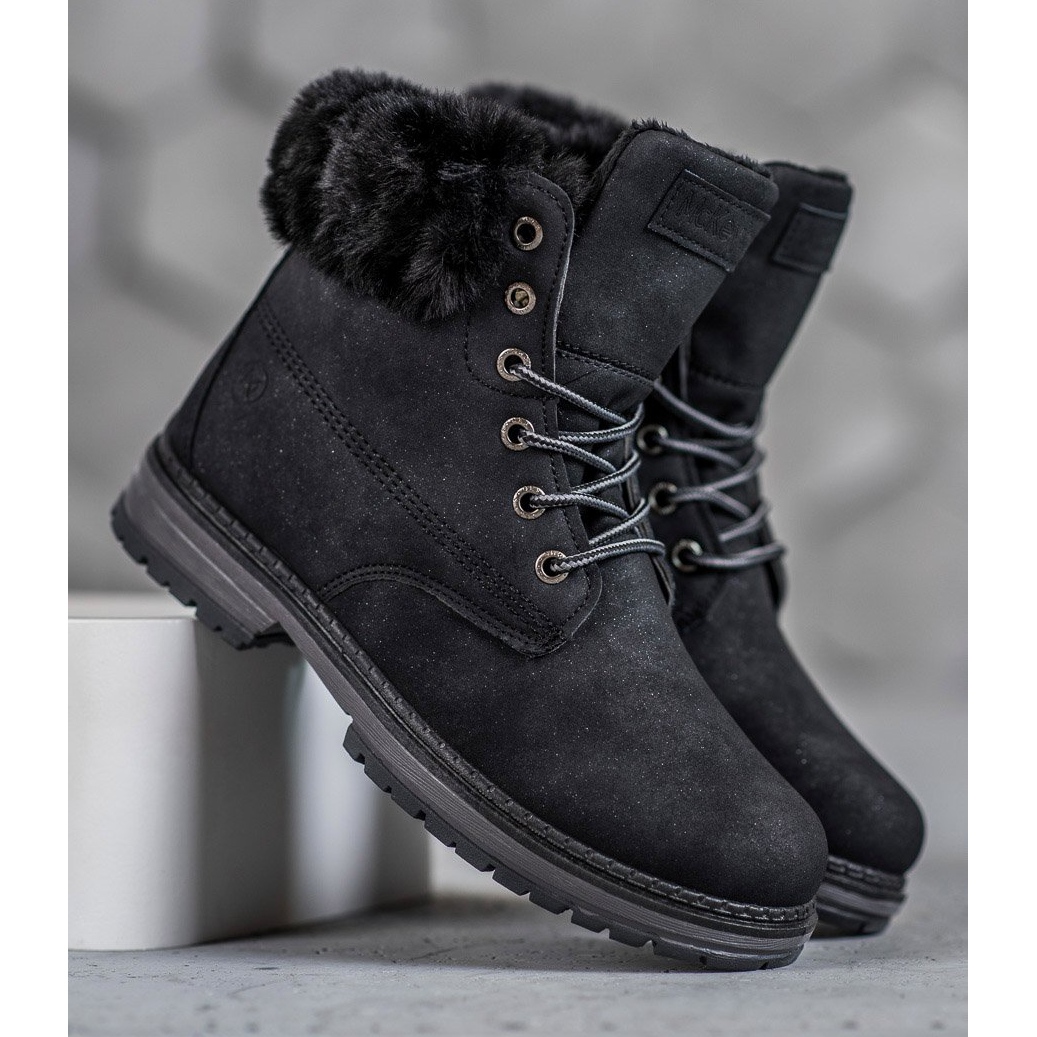 Leur couleur noire classique les rend parfaitement assortis à différents styles, à la fois décontractés et plus élégants. La fermeture à lacets permet un ajustement parfait au pied, ce qui augmente encore le confort d'utilisation. Les trappeurs ont été conçus pour répondre aux défis du quotidien et leur semelle solide avec bande de roulement garantit une bonne adhérence au sol, ce qui est particulièrement important dans des conditions météorologiques difficiles.