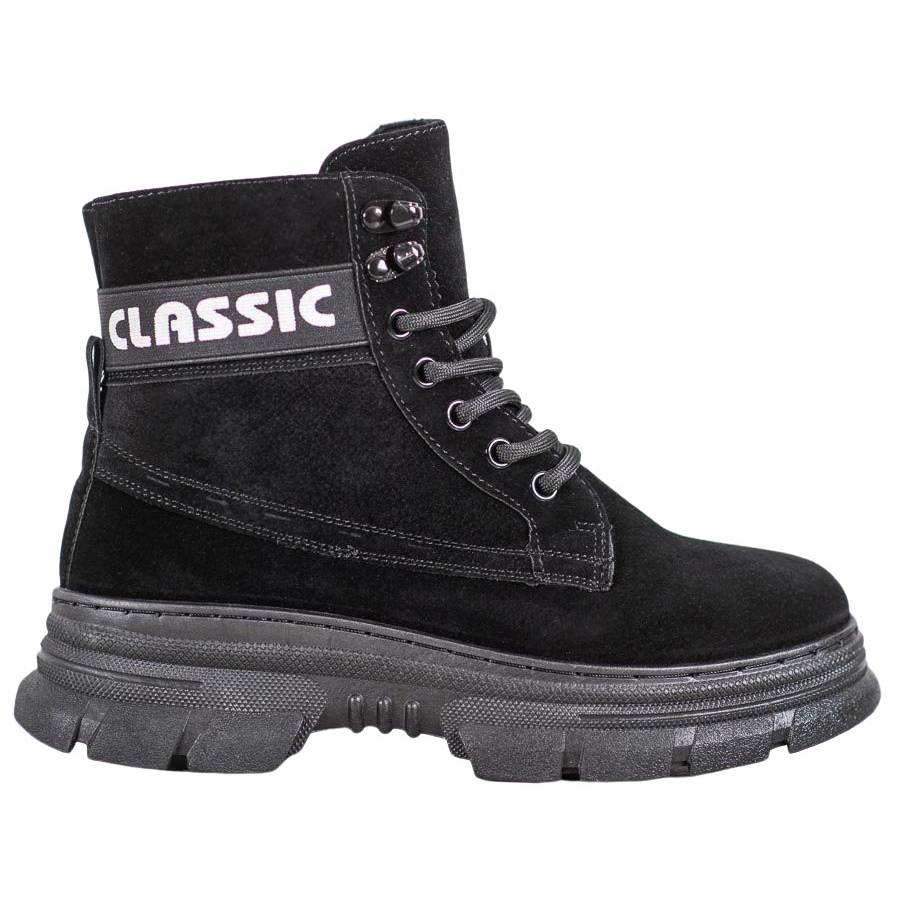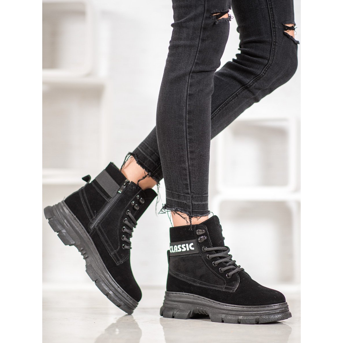 Découvrez une nouvelle dimension de confort et de style avec les bottines à plateforme classiques Bella Paris dans une élégante couleur noire. Ces chaussures pour femmes à la mode, fabriquées en daim écologique, allient les dernières tendances au respect de l'environnement, ce qui en fait un choix idéal pour toute femme soucieuse de son style et qui en même temps abandonne les produits en cuir naturel.