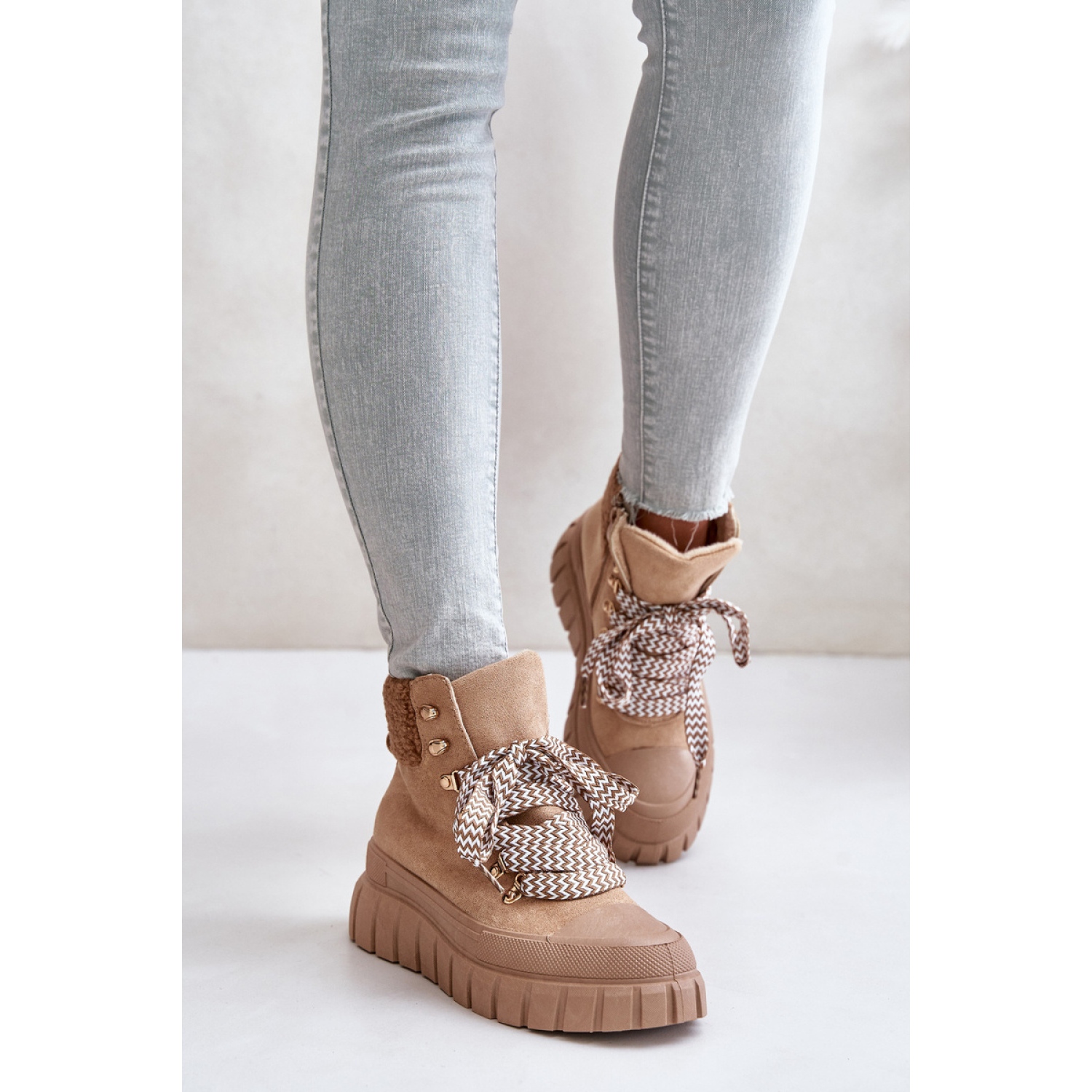 Ce modèle est caractérisé par une fixation de fermeture éclair et un laçage pratiques, qui vous permet de faire parfaitement correspondre les chaussures au pied. De plus, au sommet de la tige, il y a un charmant manteau de peau de mouton, ce qui ajoute tout le confort et l'accent élégant.
