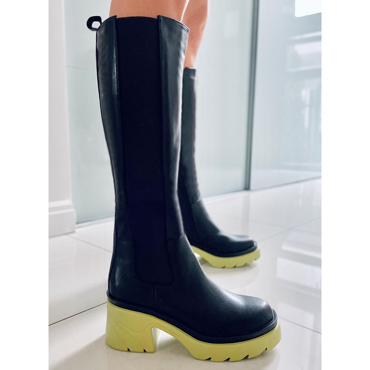 Nous vous présentons de belles bottes à semelle colorée de la marque PA1, modèle BLACK/GREEN en noir classique. Incontournables de toute garde-robe tendance, ces bottines femme pleine fleur allient élégance et confort au quotidien. Elles se caractérisent par la coupe la plus tendance, avec un large talon haut de 6,5 cm et une plateforme stable de 2 cm, qui assurent un confort tout au long de la journée.