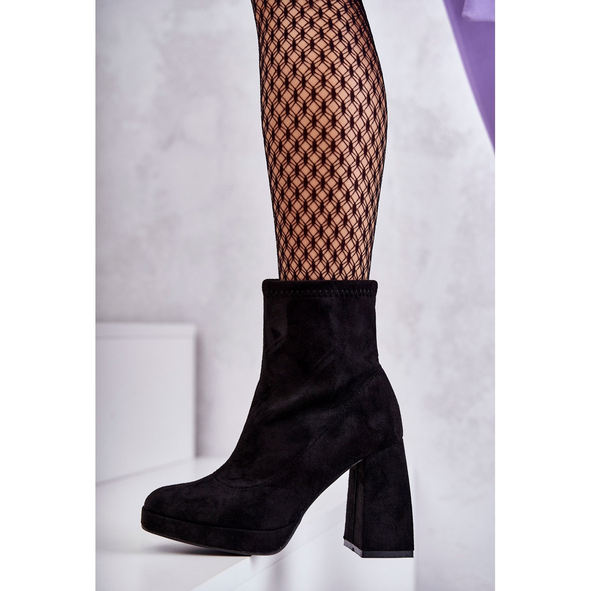 Les bottines à talons hauts en daim noir pour femmes sont une proposition idéale pour les femmes qui apprécient l'élégance combinée au confort. Fabriquées en éco-daim de haute qualité, ces bottes séduisent non seulement par leur apparence, mais offrent également un confort de port grâce à la semelle intérieure en éco-cuir souple.