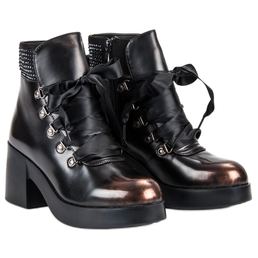 Nous vous présentons des bottines à talons hauts tendance de la marque Super Me dans une belle couleur marron. Ces chaussures élégantes, qui séduisent par leur style et leur finition, seront parfaites pour tout style d'automne et d'hiver. La tige haute ornée de strass et de cristaux leur confère un caractère unique, tandis que la fermeture à lacets et la fermeture éclair supplémentaire assurent un confort et un ajustement parfait à la jambe.