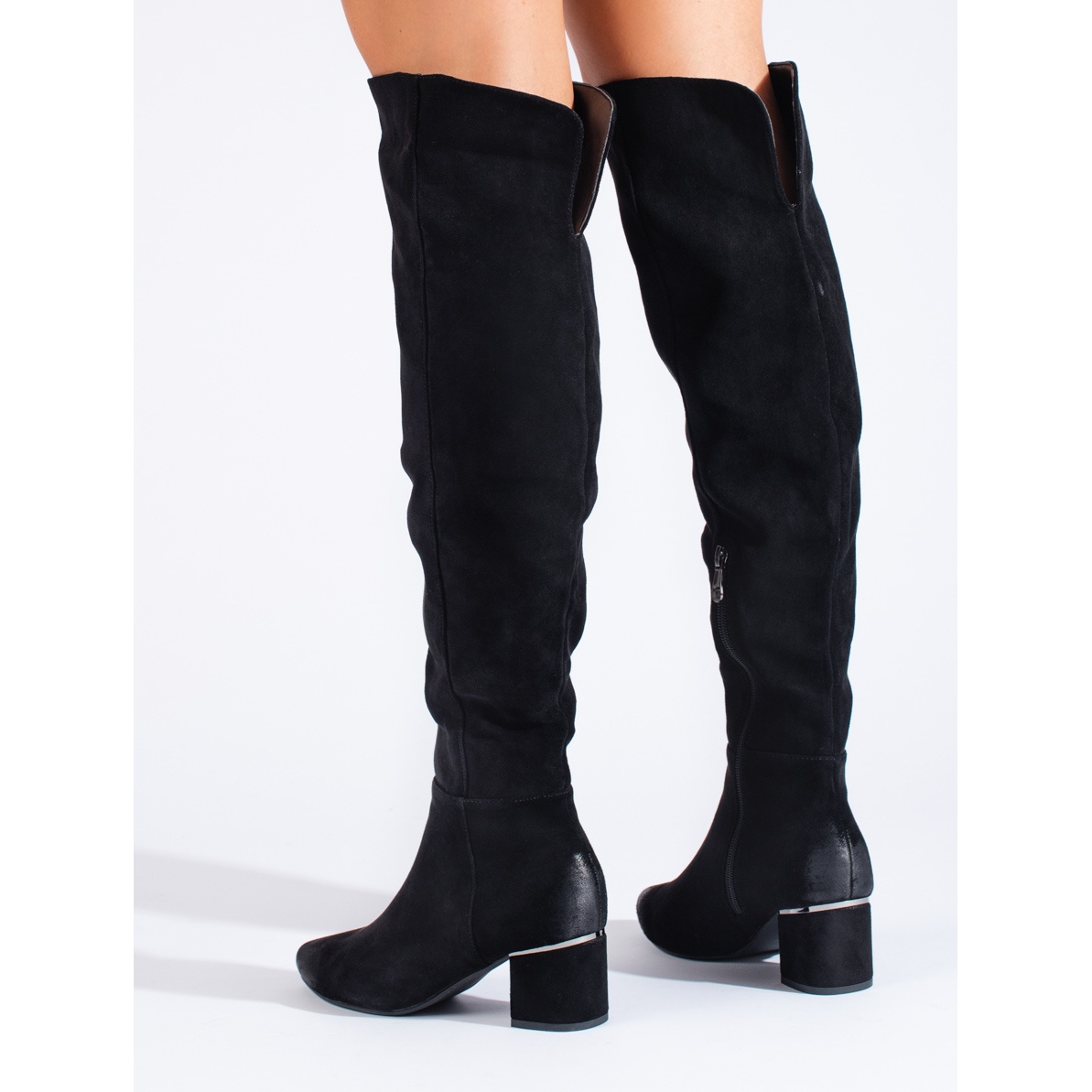 En termes de fonctionnalité, les utilisateurs apprécieront certainement la fermeture éclair pratique qui facilite l'enfilage et le retrait rapide des chaussures. La coupe "mousquetaire", associée à la tige arrivant au-dessus du genou, garantit une protection contre le froid et donne un effet de jambes allongées.