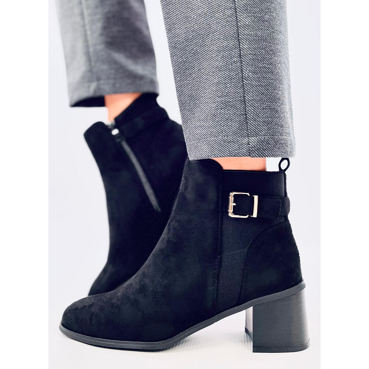Boots noirs classiques Cyndi Black Sede est un incontournable dans une garde-robe féminine. La finition en daim en combinaison avec une coupe soignée et un nez arrondi donne un effet intemporel qui fonctionnera à la fois pour le bureau et pour les sorties le week-end. Un large talon de bloc stable avec une hauteur de 5,5 cm offre une commodité lors d'une longue usure, et la fermeture éclair sur le côté et un insert flexible facilitent la mise (inspirée des patins).