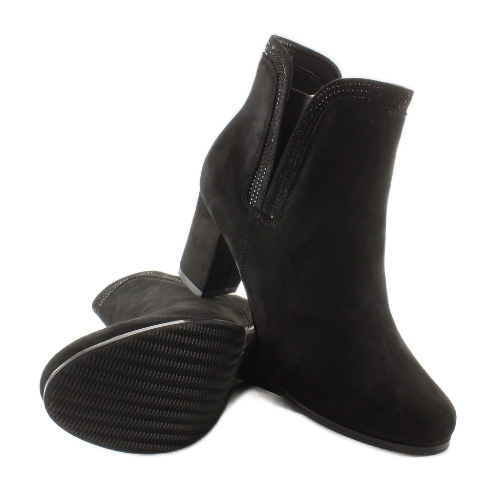 Découvrez l'élégance et le confort dans les bottines à talons hauts en daim AL-1 noires. Ces bottines élégantes pour femmes avec une hauteur de talon de 8 cm allient parfaitement un look classique avec une approche moderne de la mode. Fabriqués en daim écologique, ils sont extrêmement chics et soulignent parfaitement n'importe quel style, du quotidien aux sorties en soirée.