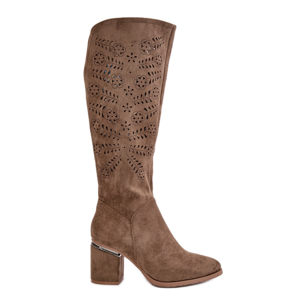 Détails: Bottes à talons hauts ajourés pour femmes en suède écologique Vinceza 16443 Beige foncé