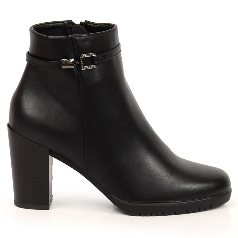 Nous vous présentons d'élégantes bottines à talons hauts avec strass de Sergio Leone, modèle SK385 en noir - le choix parfait pour les journées d'automne et d'hiver. Ces chaussures élégantes allient parfaitement confort et design tendance, ce qui en fait un élément essentiel de la garde-robe de chaque femme.