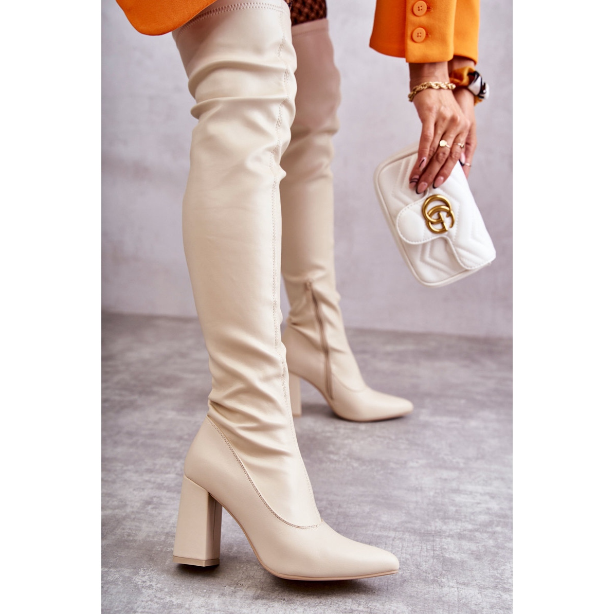 Détails: Bottes à Talons Hauts en Cuir Beige Casto