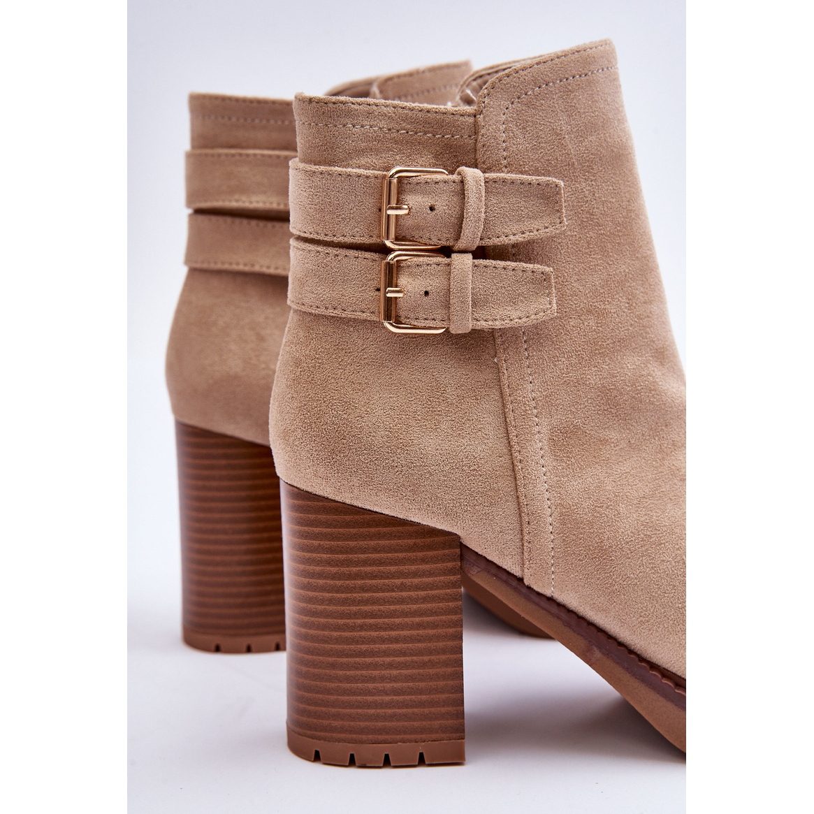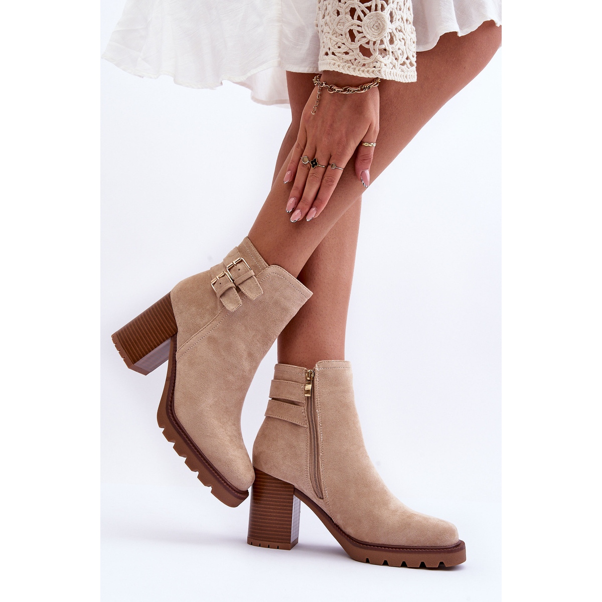 Ces élégantes bottines à talons hauts en daim de Makeline sont des chaussures qui embelliront n'importe quel style. Les chaussures sont beiges, ce qui les rend universelles et faciles à assortir à différents styles. Les bottes sont fabriquées en éco-daim, entièrement végétalien, doux et durable pour un usage quotidien.