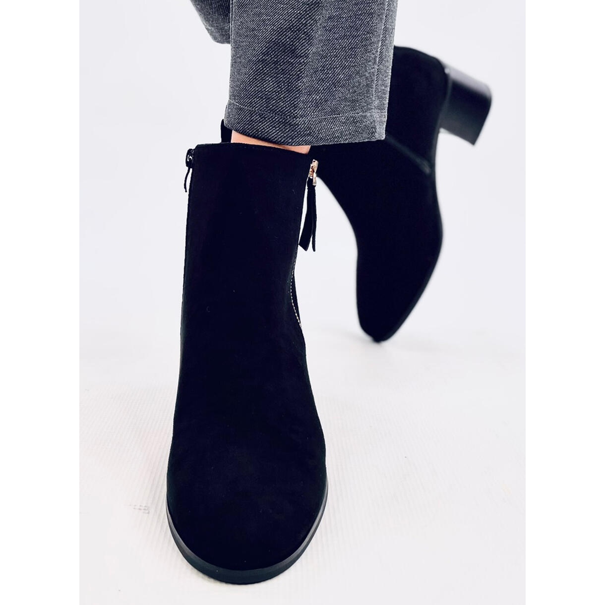 Découvrez l'élégance et le confort offerts par les bottines à talons hauts pour femme en daim de couleur noire classique. Ces chaussures élégantes, équipées d'une spectaculaire fermeture éclair dorée sur le côté, sont le choix parfait pour toute femme qui souhaite allier look tendance et confort.