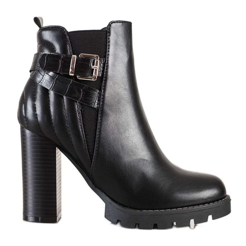Ces chaussures se caractérisent par un talon intégré et rigidifié et un talon haut en forme de bloc de 10,5 cm, qui leur apporte classe et chic. Fabriqués en simili cuir écologique, ils sont non seulement tendance, mais également respectueux de l'environnement. L'intérieur des bottes est en matière textile, ce qui assure confort et chaleur lors des journées les plus froides.