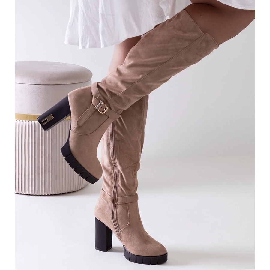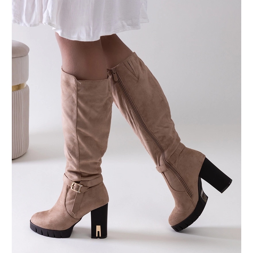 Détails: Bottes à talons hauts isolées beiges d'Alra